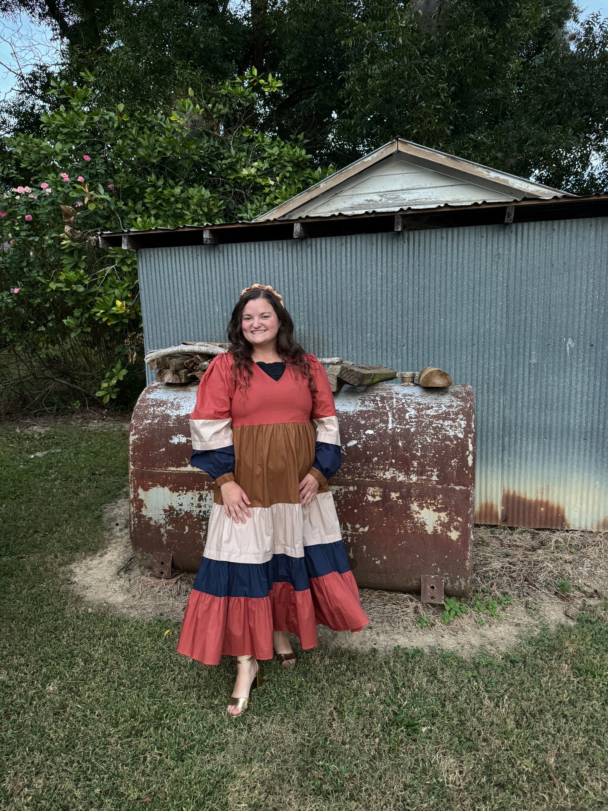 This dress is perfect for all of your upcoming events! It is stunning in person! Maxi length on model who is 4’10” This dress also has pockets!